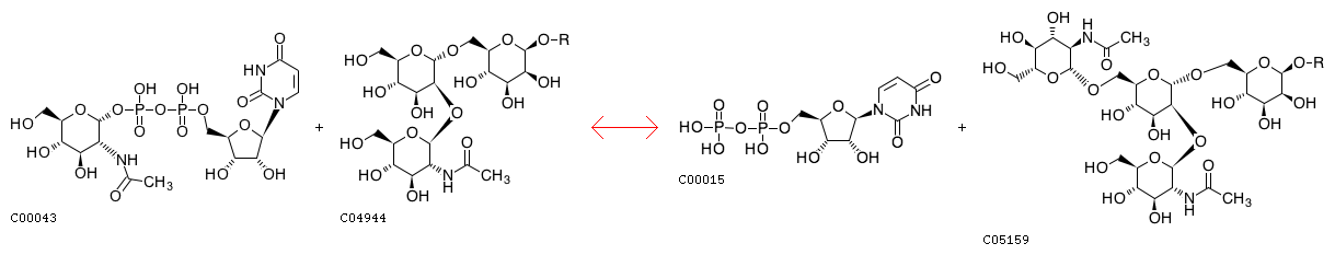 R04665 UDP-N-acetyl-alpha-D-glucosamine + 6-(2-[N-Acetyl-beta-D-glucosaminyl]-alpha-D-mannosyl)-beta-D-mannosyl-R <=> UDP + 6-(2,6-Bis[N-acetyl-beta-D-glucosaminyl]-alpha-D-mannosyl)-beta-D-mannosyl-R