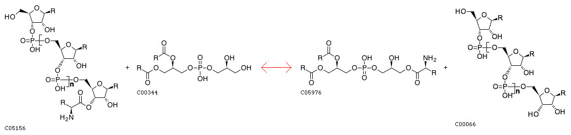Aminoacyl-tRNA + Phosphatidylglycerol <=> Aminoacyl-phosphatidylglycerol + tRNA