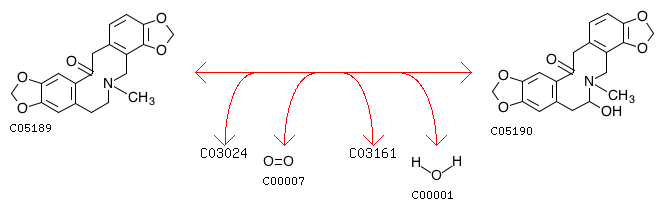 R04699 Protopine + [Reduced NADPH---hemoprotein reductase] + Oxygen <=> 6-Hydroxyprotopine + [Oxidized NADPH---hemoprotein reductase] + H2O