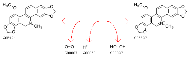 R04706 Dihydrochelirubine + Oxygen + H+ <=> Chelirubine + Hydrogen peroxide