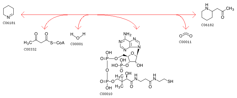 Piperideine + Acetoacetyl-CoA + H2O <=> Pelletierine + CoA + CO2