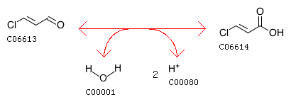R05237 trans-3-Chloroallyl aldehyde + H2O <=> trans-3-Chloroacrylic acid + 2 H+