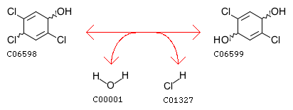 R05370 2,4,5-Trichloro-2,5-cyclohexadiene-1-ol + H2O <=> 2,5-Dichloro-2,5-cyclohexadiene-1,4-diol + Hydrochloric acid