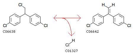 1-Chloro-2,2-bis(4'-chlorophenyl)ethane <=> unsym-Bis(4'-chlorophenyl)ethylene + Hydrochloric acid