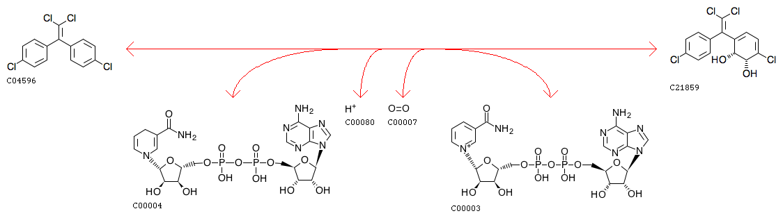 R05475 1,1-Dichloro-2,2-bis(4-chlorophenyl)ethylene + NADH + H+ + Oxygen <=> cis-3-[2,2-Dichloro-1-(4-chlorophenyl)vinyl]-6-chlorocyclohexa-3,5-diene-1,2-diol + NAD+