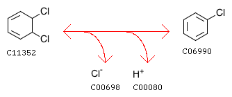 5,6-Dichloro-1,3-cyclohexadiene <=> Chlorobenzene + Cl- + H+