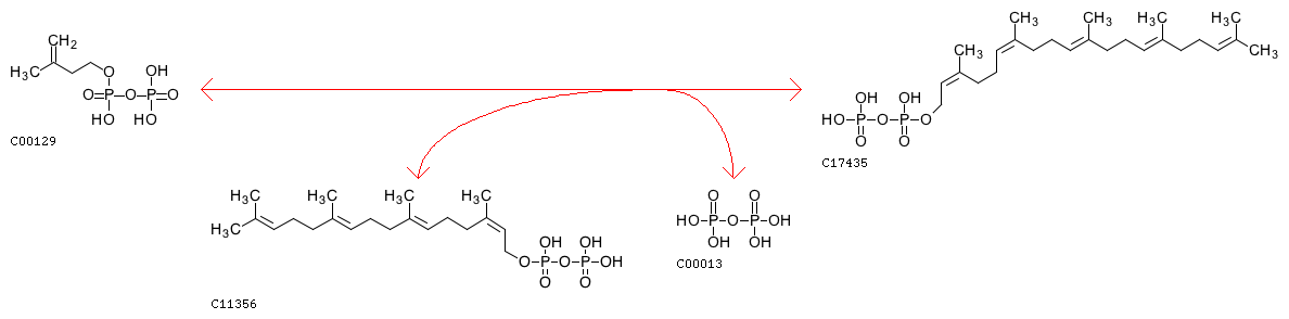 R05555 trans,trans-Farnesyl diphosphate + Isopentenyl diphosphate <=> trans,trans,cis-Geranylgeranyl diphosphate + Diphosphate