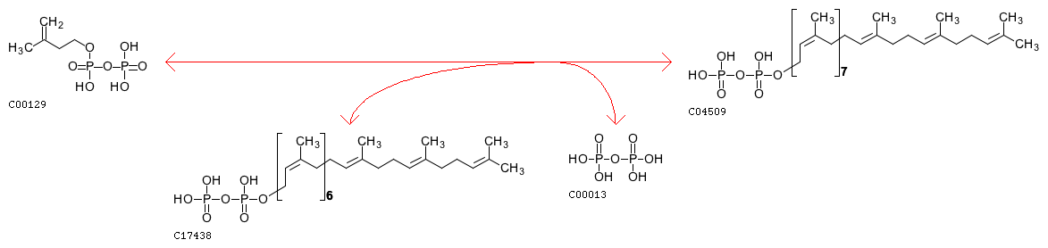 R08750 di-trans,poly-cis-Hexaprenyl diphosphate + Isopentenyl diphosphate <=> di-trans,poly-cis-Heptaprenyl diphosphate + Diphosphate