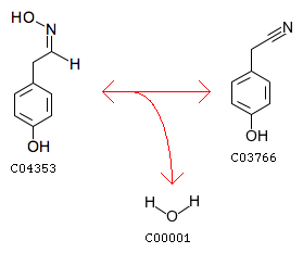 R04306 (Z)-4-Hydroxyphenylacetaldehyde oxime <=> 4-Hydroxyphenylacetonitrile + H2O