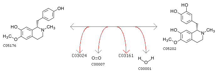 R05732 (S)-N-Methylcoclaurine + [Reduced NADPH---hemoprotein reductase] + Oxygen <=> 3'-Hydroxy-N-methyl-(S)-coclaurine + [Oxidized NADPH---hemoprotein reductase] + H2O