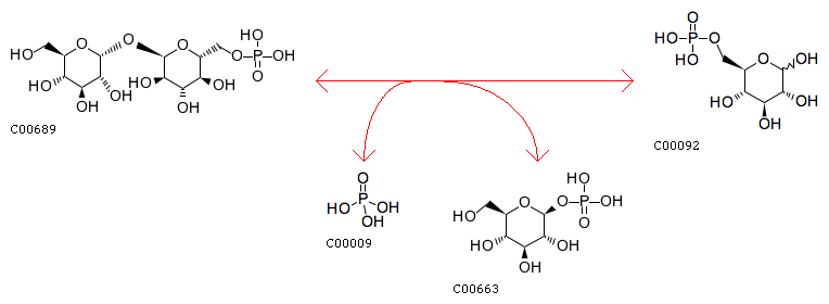 R05767 alpha,alpha'-Trehalose 6-phosphate + Orthophosphate <=> D-Glucose 6-phosphate + beta-D-Glucose 1-phosphate