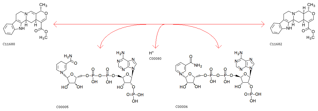 Cathenamine + NADPH + H+ <=> Tetrahydroalstonine + NADP+