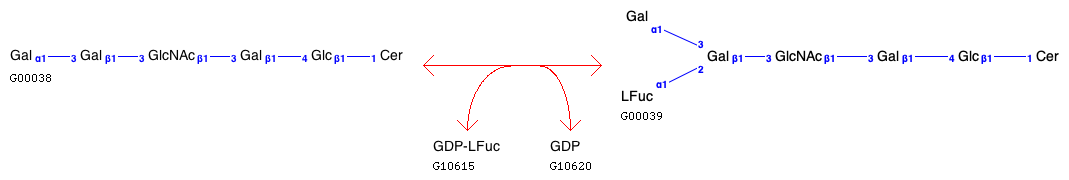 R06170 GDP-L-fucose + G00038 <=> GDP + Type IB glycolipid