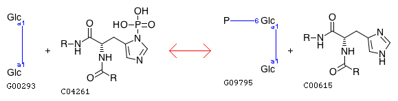 R06229 Trehalose + Protein N(pi)-phospho-L-histidine <=> Trehalose 6-phosphate + Protein histidine