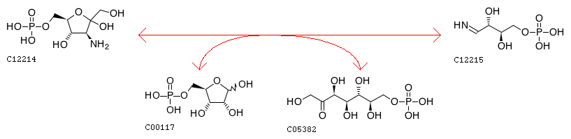 Aminofructose 6-phosphate + D-Ribose 5-phosphate <=> Iminoerythrose 4-phosphate + Sedoheptulose 7-phosphate