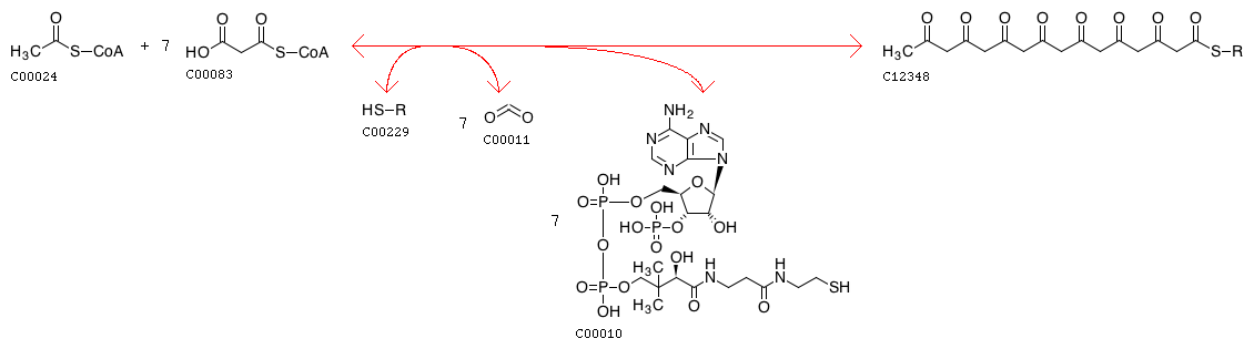 R06635 Acetyl-CoA + 7 Malonyl-CoA + Acyl-carrier protein <=> 3,5,7,9,11,13,15-Heptaoxo-hexadecanoyl-[acp] + 7 CO2 + 7 CoA