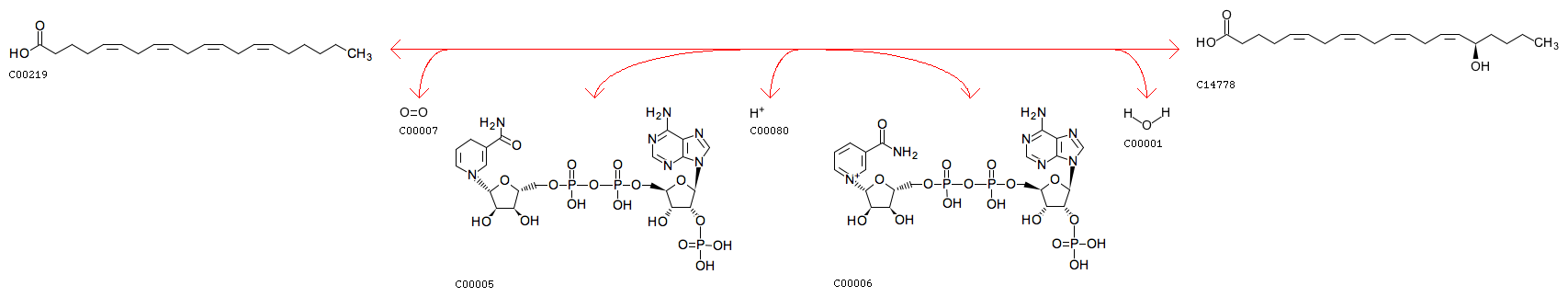 R07054 Arachidonate + Oxygen + NADPH + H+ <=> 16(R)-HETE + NADP+ + H2O