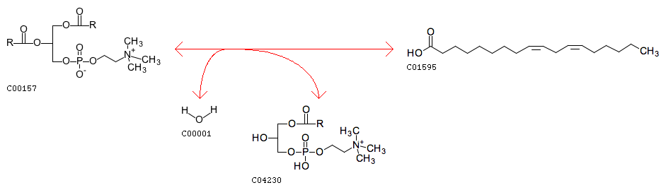 Phosphatidylcholine + H2O <=> 1-Acyl-sn-glycero-3-phosphocholine + Linoleate