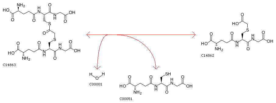 2-(S-Glutathionyl)acetyl glutathione + H2O <=> 2-S-Glutathionyl acetate + Glutathione