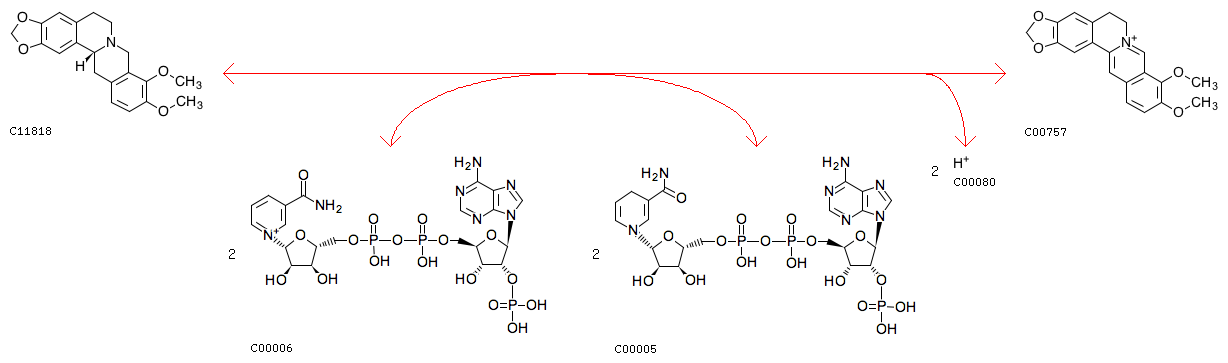 R07169 (R)-Canadine + 2 NADP+ <=> Berberine + 2 NADPH + 2 H+