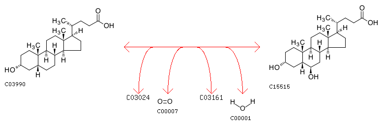 R07203 Lithocholic acid + [Reduced NADPH---hemoprotein reductase] + Oxygen <=> Murideoxycholate + [Oxidized NADPH---hemoprotein reductase] + H2O