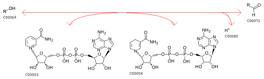 Alcohol + NAD+ <=> Aldehyde + NADH + H+