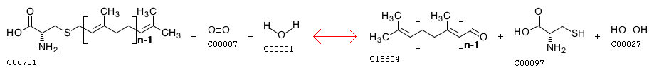 R07360 Prenyl-L-cysteine + Oxygen + H2O <=> Prenal + L-Cysteine + Hydrogen peroxide