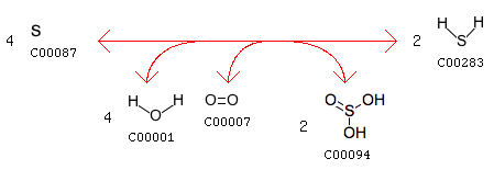 R07365 4 Sulfur + 4 H2O + Oxygen <=> 2 Hydrogen sulfide + 2 Sulfite