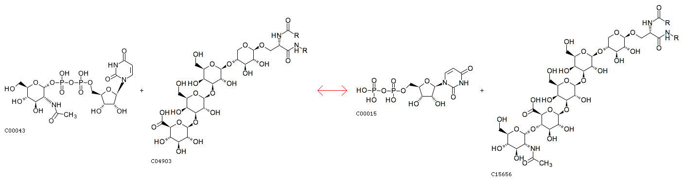 UDP-N-acetyl-alpha-D-glucosamine + 3-beta-D-Glucuronosyl-3-beta-D-galactosyl-4-beta-D-galactosyl-O-beta-D-xylosylprotein <=> UDP + alpha-N-Acetyl-D-glucosaminyl-(1->4)-beta-D-glucuronosyl-(1->3)-beta-D-galactosyl-(1->3)-beta-D-galactosyl-(1->4)-beta-D-xylosylproteoglycan