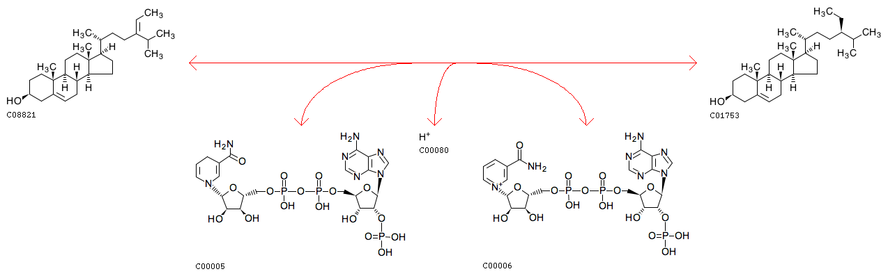 R07488 Isofucosterol + NADPH + H+ <=> beta-Sitosterol + NADP+