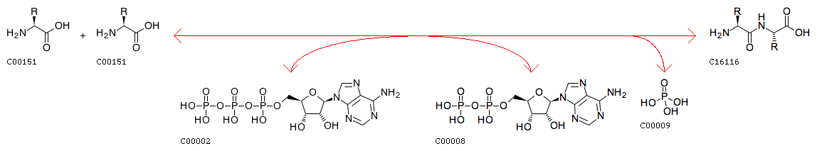 ATP + L-Amino acid + L-Amino acid <=> ADP + Orthophosphate + L-Aminoacyl-L-amino acid