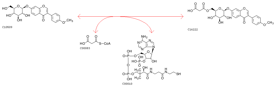 R07731 Ononin + Malonyl-CoA <=> Formononetin 7-O-(6-O-malonyl-beta-D-glucoside) + CoA