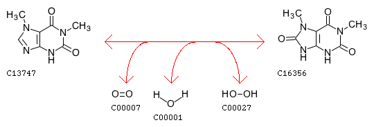 R07977 1,7-Dimethylxanthine + Oxygen + H2O <=> 1,7-Dimethyluric acid + Hydrogen peroxide