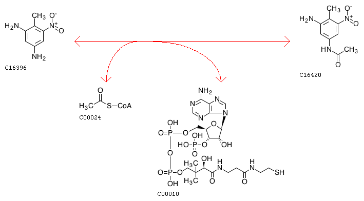 R08036 2,4-Diamino-6-nitrotoluene + Acetyl-CoA <=> 4-Acetamido-2-amino-6-nitrotoluene + CoA