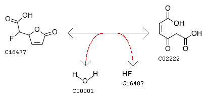 R08120 5-Fluoromuconolactone + H2O <=> 2-Maleylacetate + Hydrofluoric acid