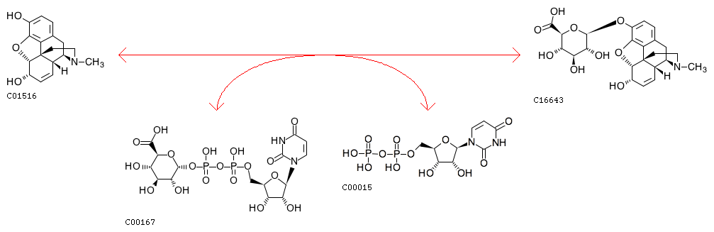R08262 Morphine + UDP-glucuronate <=> Morphine-3-glucuronide + UDP