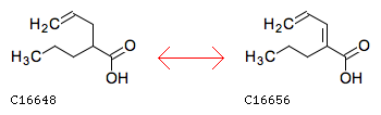 2-n-Propyl-4-pentenoic acid <=> 2-Propyl-2,4-pentadienoic acid