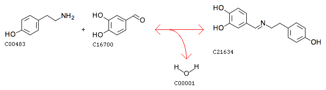 Tyramine + 3,4-Dihydroxybenzaldehyde <=> Norcraugsodine + H2O