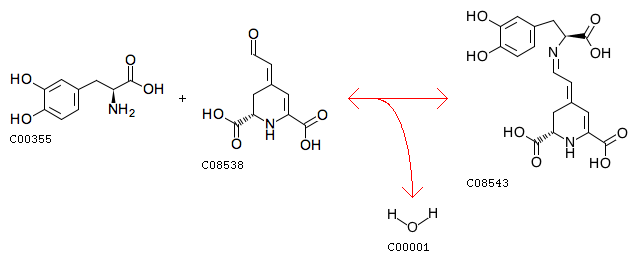 3,4-Dihydroxy-L-phenylalanine + Betalamic acid <=> Dopaxanthin + H2O