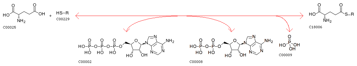 R08905 ATP + L-Glutamate + Acyl-carrier protein <=> ADP + Orthophosphate + gamma-L-Glutamyl-[acp]