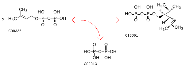 R08948 2 Dimethylallyl diphosphate <=> Diphosphate + Chrysanthemyl diphosphate