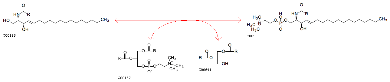 R08969 N-Acylsphingosine + Phosphatidylcholine <=> Sphingomyelin + 1,2-Diacyl-sn-glycerol