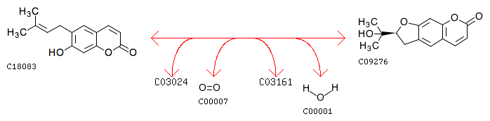 R08997 Demethylsuberosin + [Reduced NADPH---hemoprotein reductase] + Oxygen <=> Marmesin + [Oxidized NADPH---hemoprotein reductase] + H2O