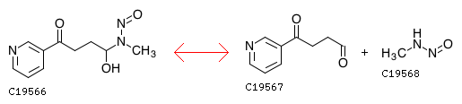 4-Hydroxy-4-(methylnitrosoamino)-1-(3-pyridinyl)-1-butanone <=> 4-Oxo-1-(3-pyridyl)-1-butanone + N-Nitrosomethanamine