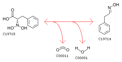 R09578 L-Phenylalanine + 2 Oxygen + 2 [Reduced NADPH---hemoprotein reductase] <=> (E)-Phenylacetaldoxime + 2 [Oxidized NADPH---hemoprotein reductase] + CO2 + 3 H2O
