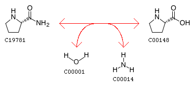 L-Prolinamide + H2O <=> L-Proline + Ammonia
