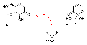 R09696 1,5-Anhydro-D-fructose <=> 2-Hydroxy-2-(hydroxymethyl)-2H-pyran-3(6H)-one + H2O