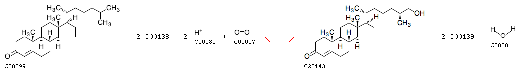 R09859 Cholest-4-en-3-one + 2 Reduced ferredoxin + 2 H+ + Oxygen <=> (25S)-26-Hydroxycholest-4-en-3-one + 2 Oxidized ferredoxin + H2O