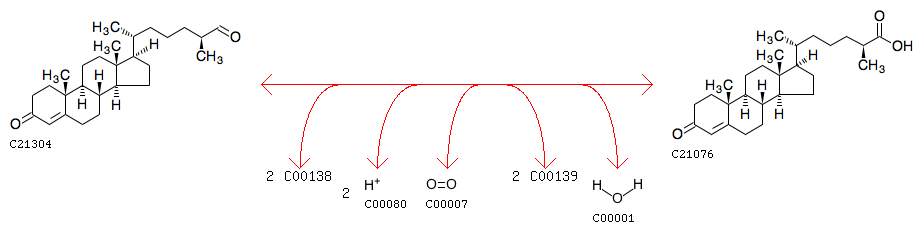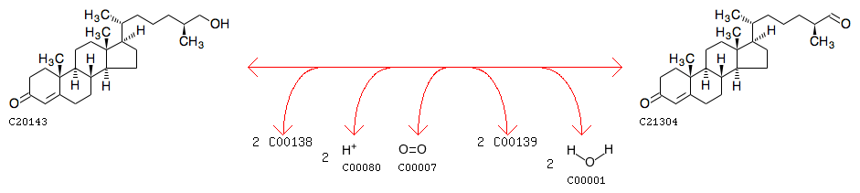 R11355 (25S)-26-Hydroxycholest-4-en-3-one + 2 Reduced ferredoxin + 2 H+ + Oxygen <=> (25S)-26-Oxocholest-4-en-3-one + 2 Oxidized ferredoxin + 2 H2O