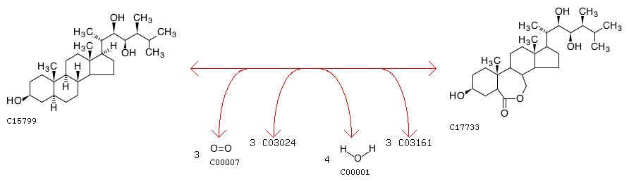 R10684 6-Deoxoteasterone + 3 Oxygen + 3 [Reduced NADPH---hemoprotein reductase] <=> 7-Oxateasterone + 4 H2O + 3 [Oxidized NADPH---hemoprotein reductase]